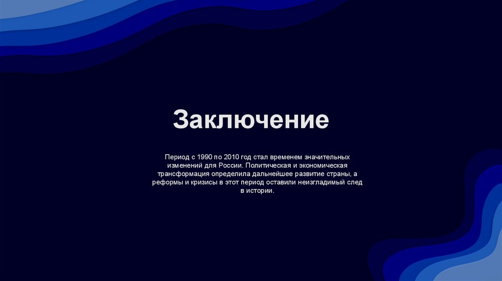 ЗаключениеПериод с 1990 по 2010 год стал временем значительных