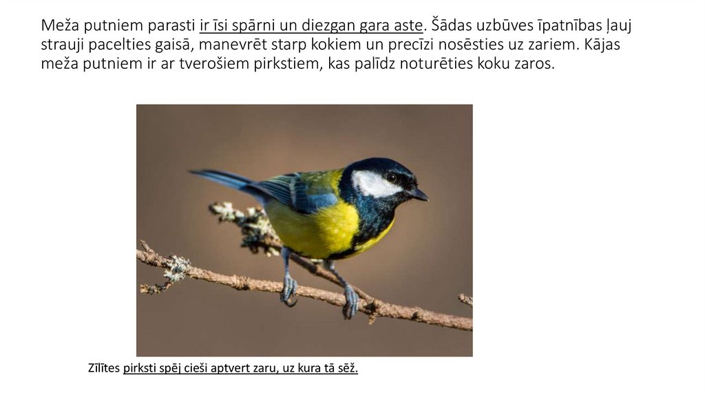 Zīlītes pirksti spēj cieši aptvert zaru, uz kura tā sēž.