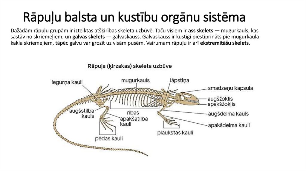piemēram, vanagi un piekūni, no liela augstuma izsekojot medījumu.14. Rāpuļu balsta un kustību orgānu sistēma