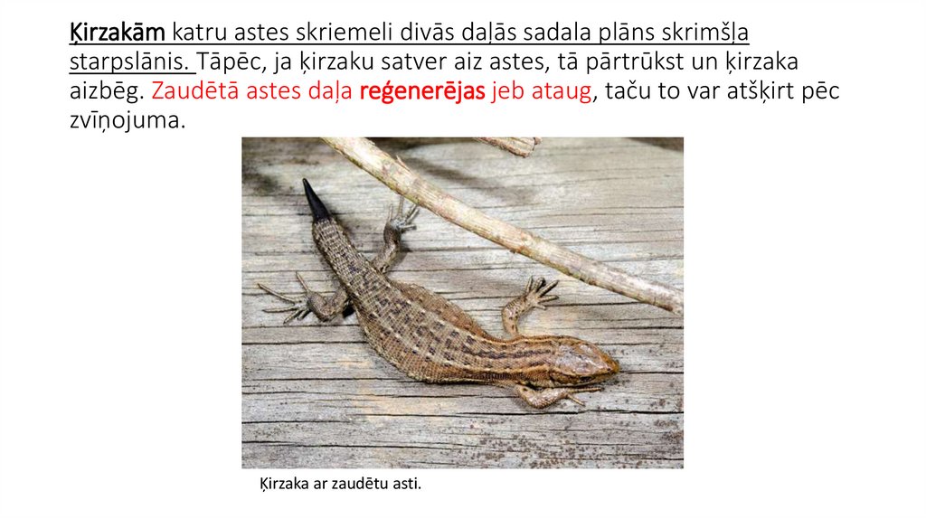 un ķirzakaaizbēg. Zaudētā astes daļa reģenerējas jeb ataug, taču to var atšķirt pēc