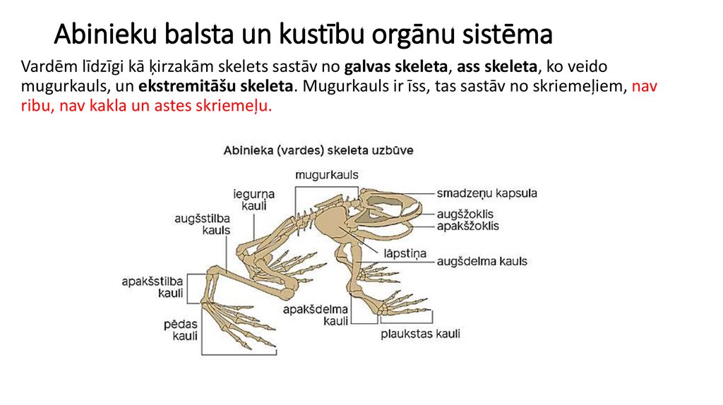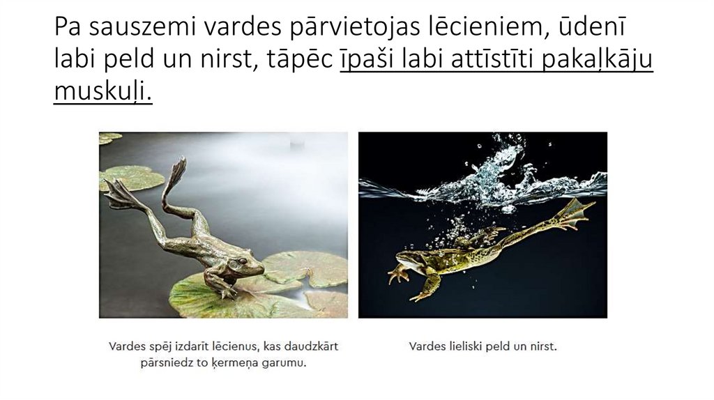 21. Pa sauszemi vardes pārvietojas lēcieniem, ūdenī labi peld un nirst, tāpēc īpaši labi attīstīti pakaļkāju muskuļi.
