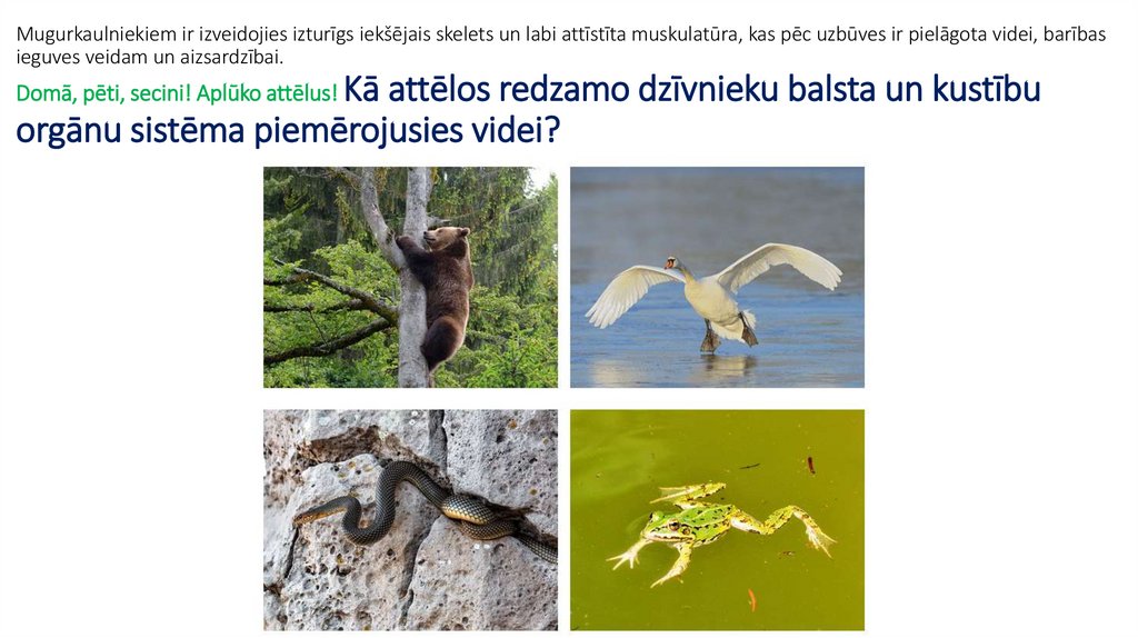 Domā, pēti, secini! Aplūko attēlus! Kā attēlos redzamo dzīvnieku balsta un kustību
