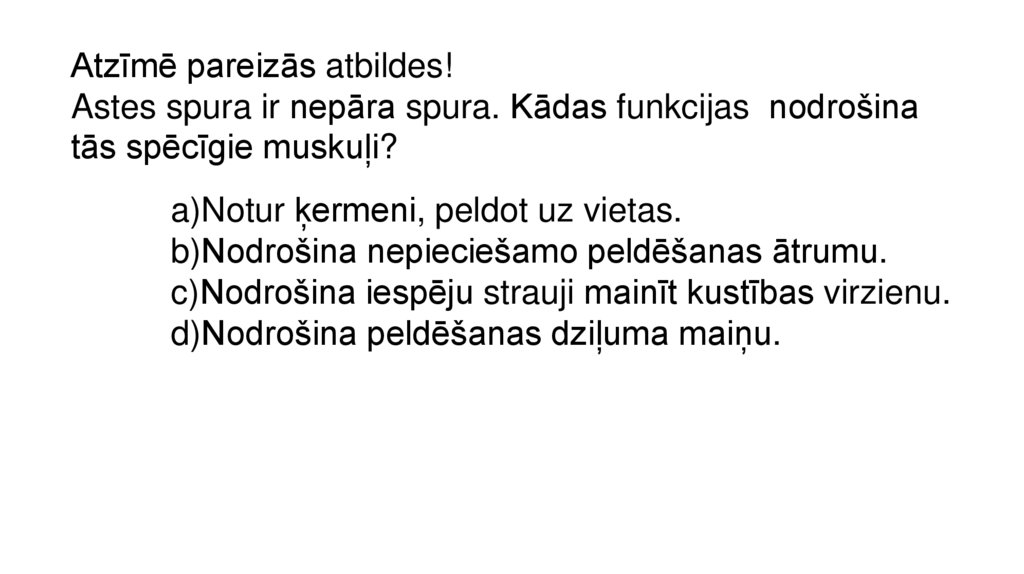 Atzīmē pareizās atbildes!Astes spura ir nepāra spura. Kādas funkcijas nodrošina