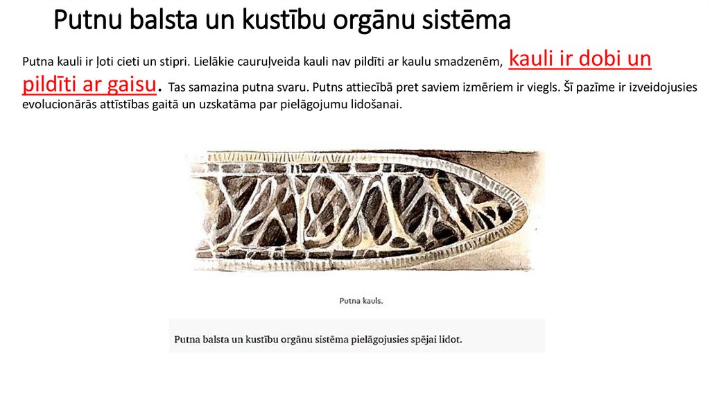 c) Putna un vardes skeletam kauli ir dobi, pildīti ar gaisu,