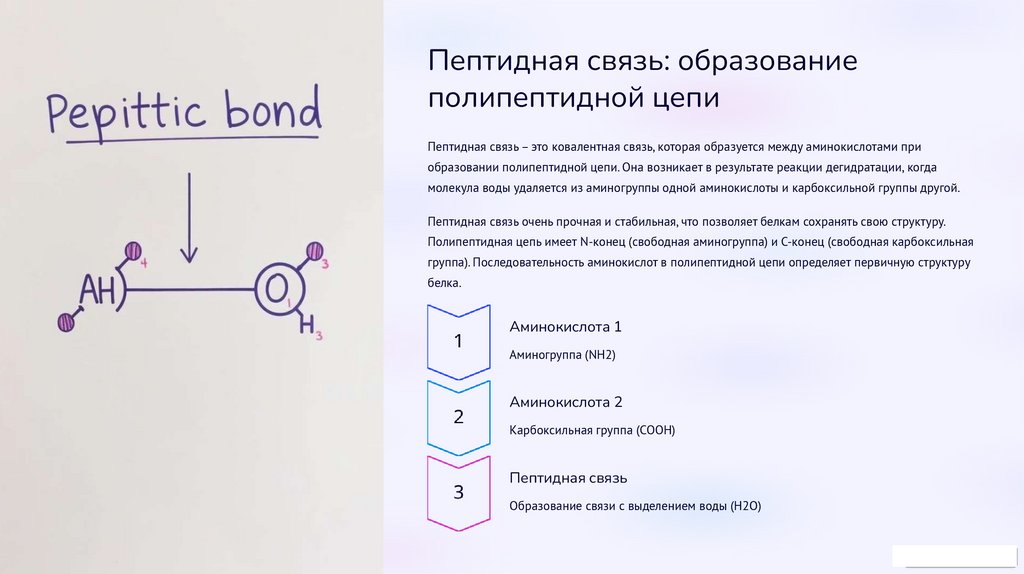 образовании полипептидной цепи. Она возникает в результате реакции дегидратации, когда