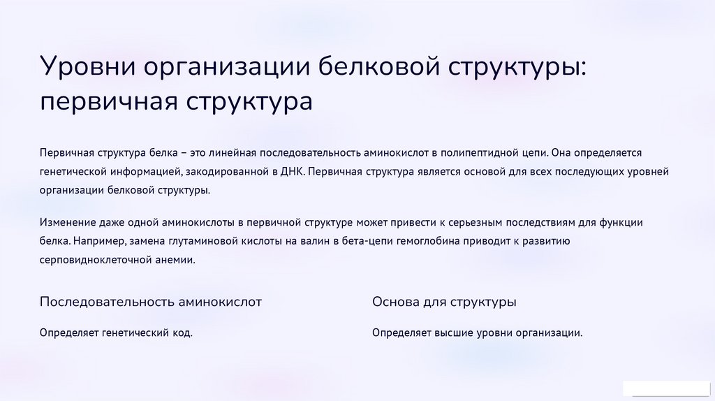 Изменение даже одной аминокислоты в первичной структуре может привести к серьезным последствиям для функции