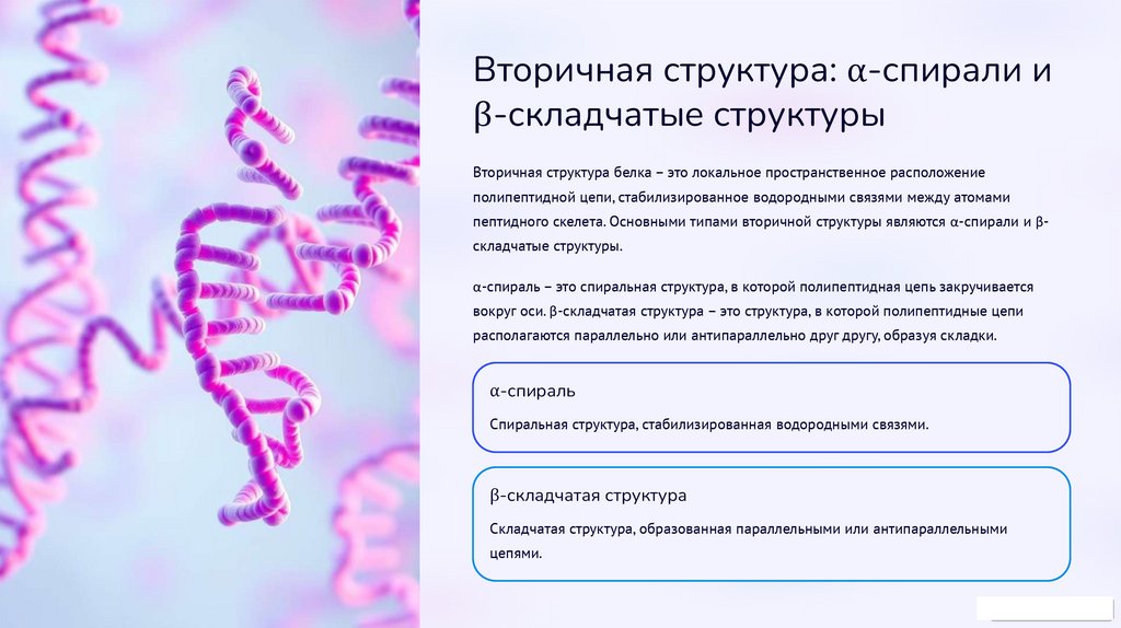 пептидного скелета. Основными типами вторичной структуры являются α-спирали и βскладчатые структуры.