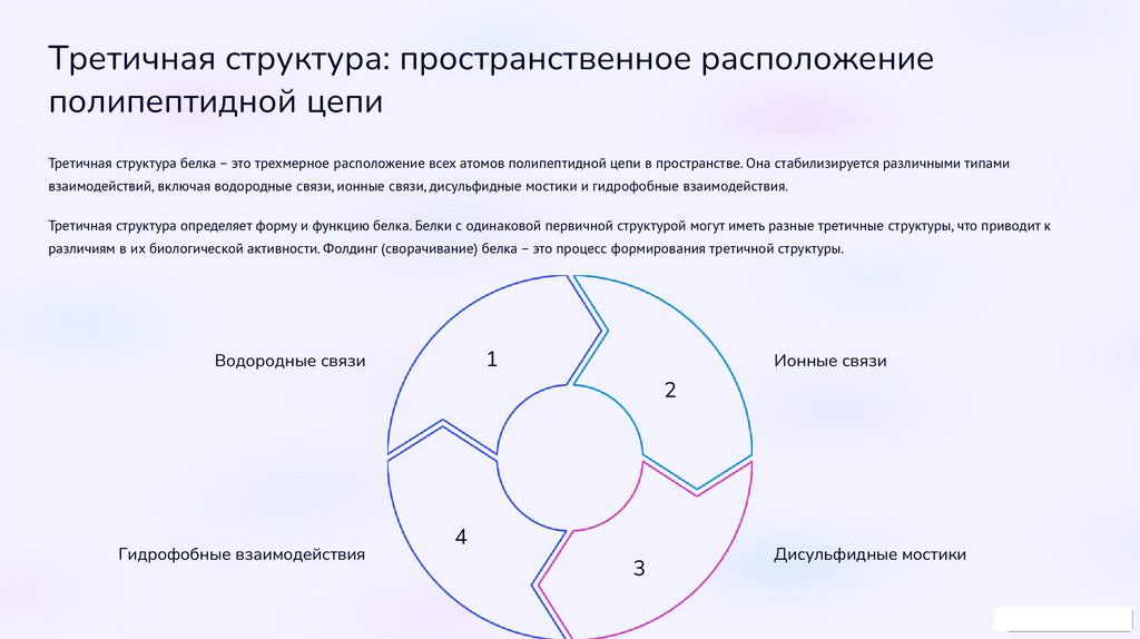взаимодействий, включая водородные связи, ионные связи, дисульфидные мостики и гидрофобные взаимодействия.