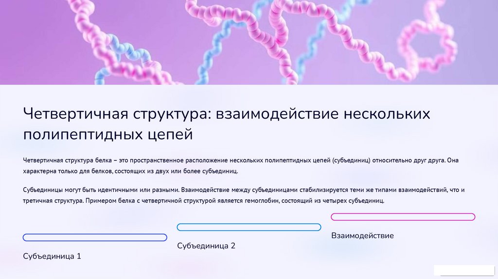 Четвертичная структура: взаимодействие несколькихполипептидных цепей