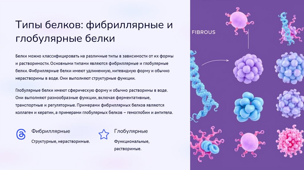 и растворимости. Основными типами являются фибриллярные и глобулярные