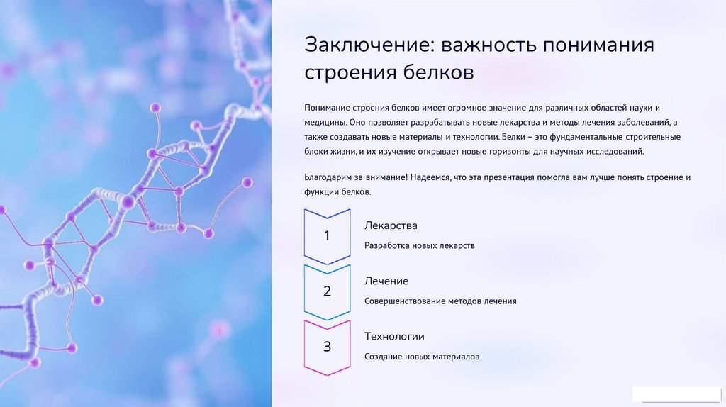Понимание строения белков имеет огромное значение для различных областей науки и
