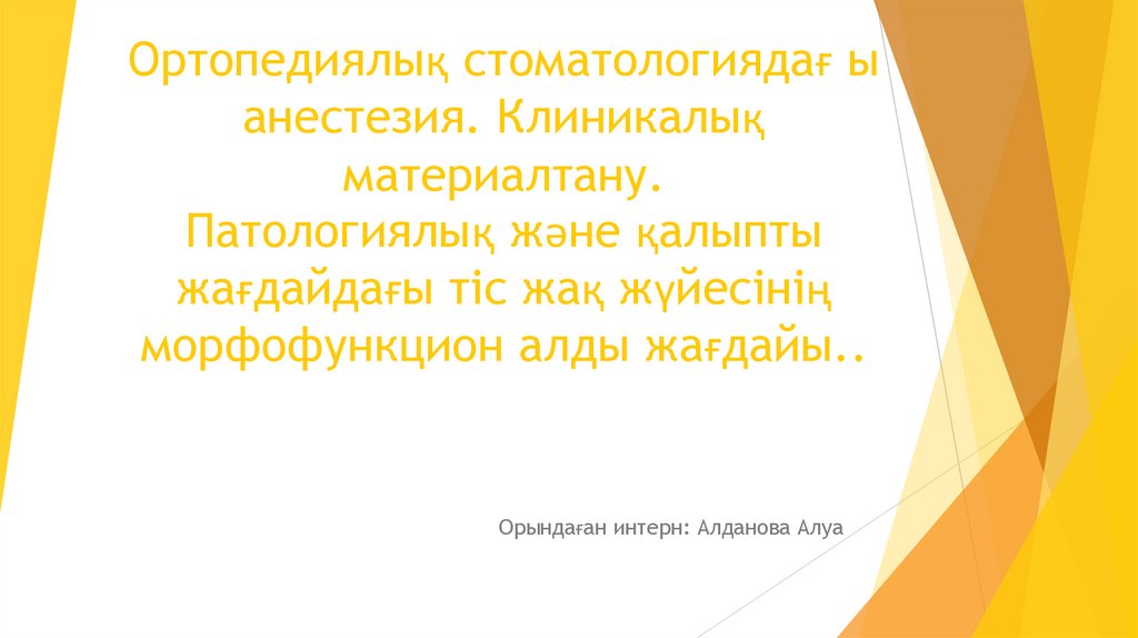 1. Ортопедиялық стоматологиядағ ы анестезия. Клиникалық материалтану. Патологиялық және қалыпты жағдайдағы тіс жақ жүйесінің