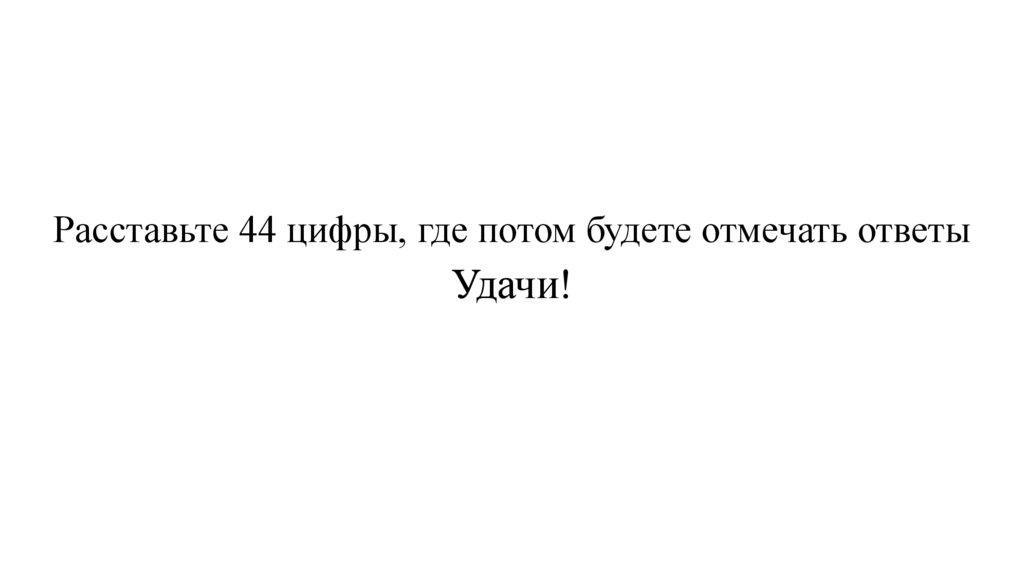 Расставьте 44 цифры, где потом будете отмечать ответыУдачи!