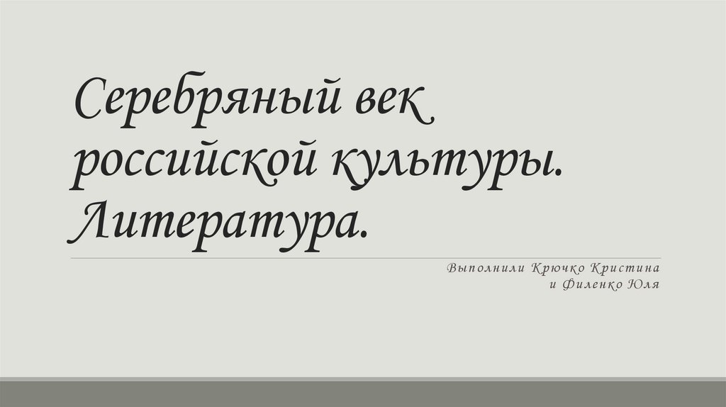 Серебряный век российской культуры. Литература