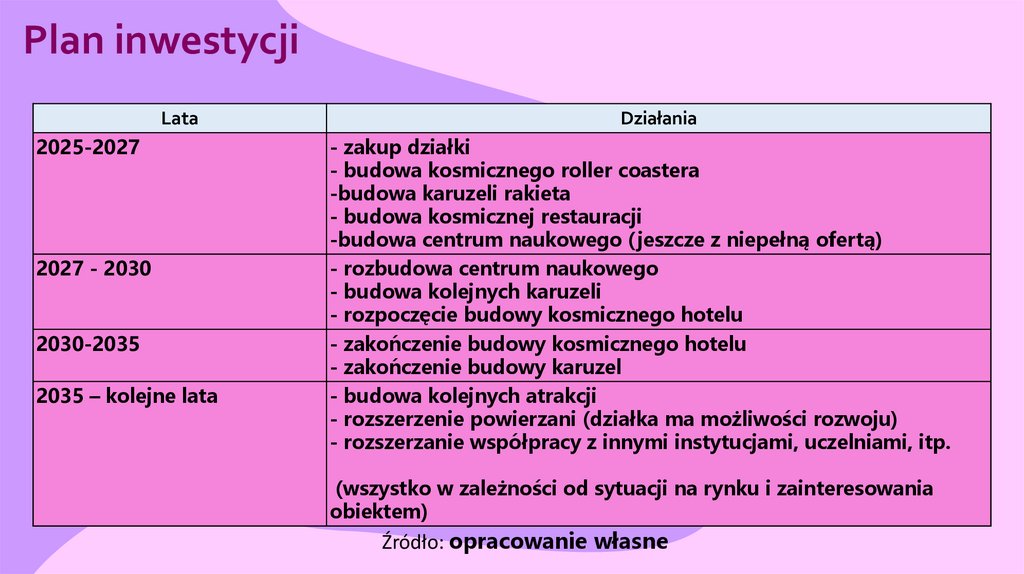 (wszystko w zależności od sytuacji na rynku i zainteresowania