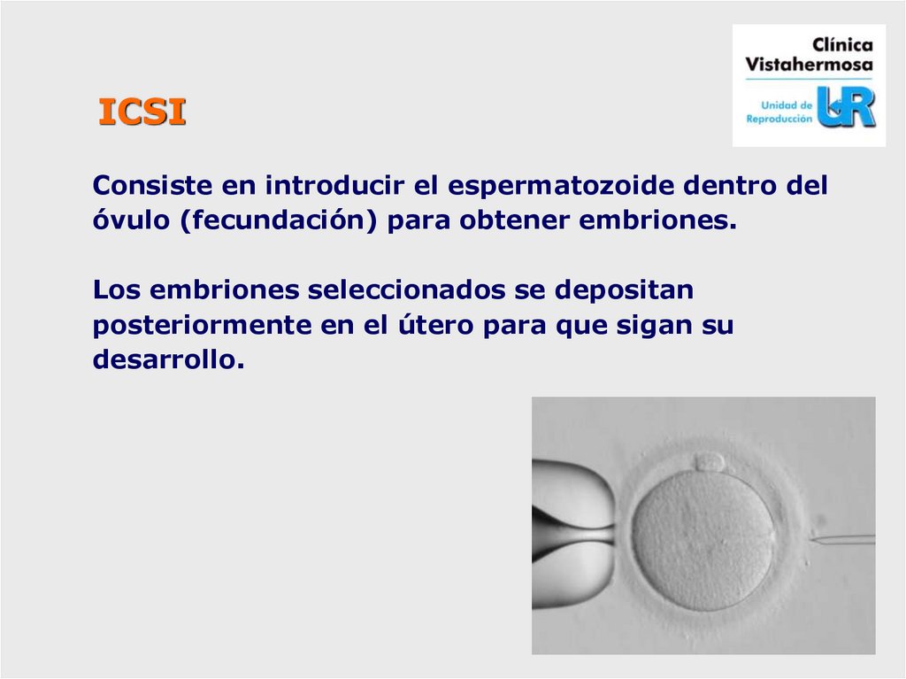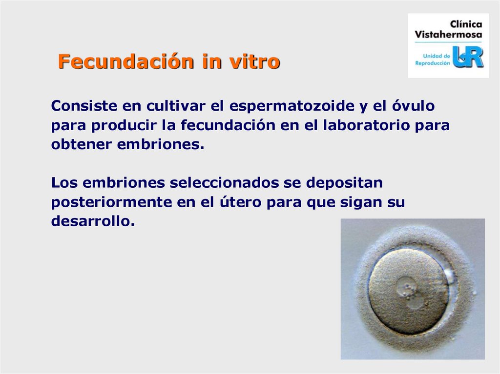 Fecundación in vitroConsiste en cultivar el espermatozoide y el óvulo