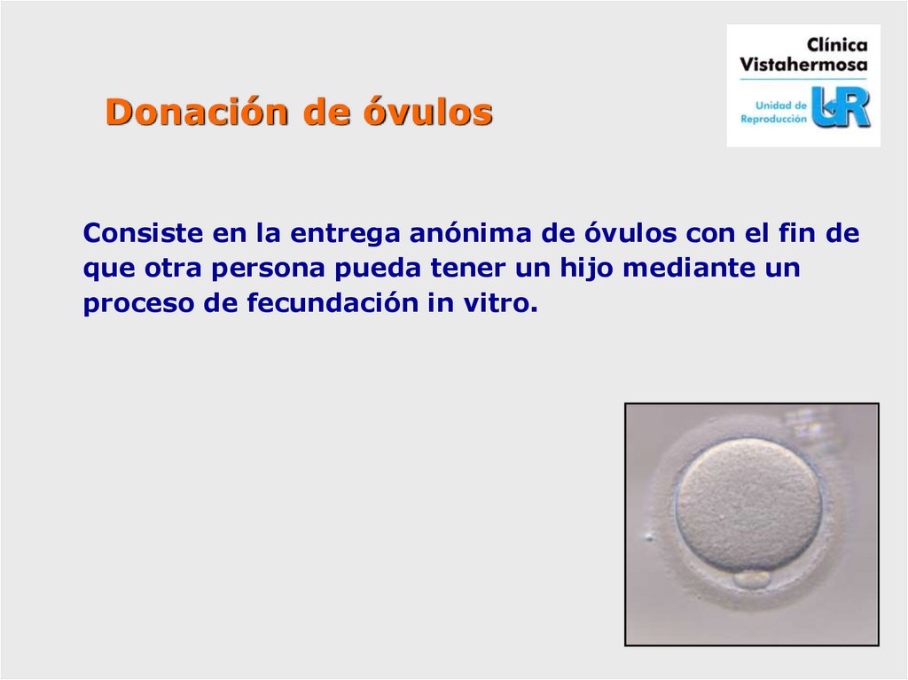 Donación de óvulosConsiste en la entrega anónima de óvulos con el fin de