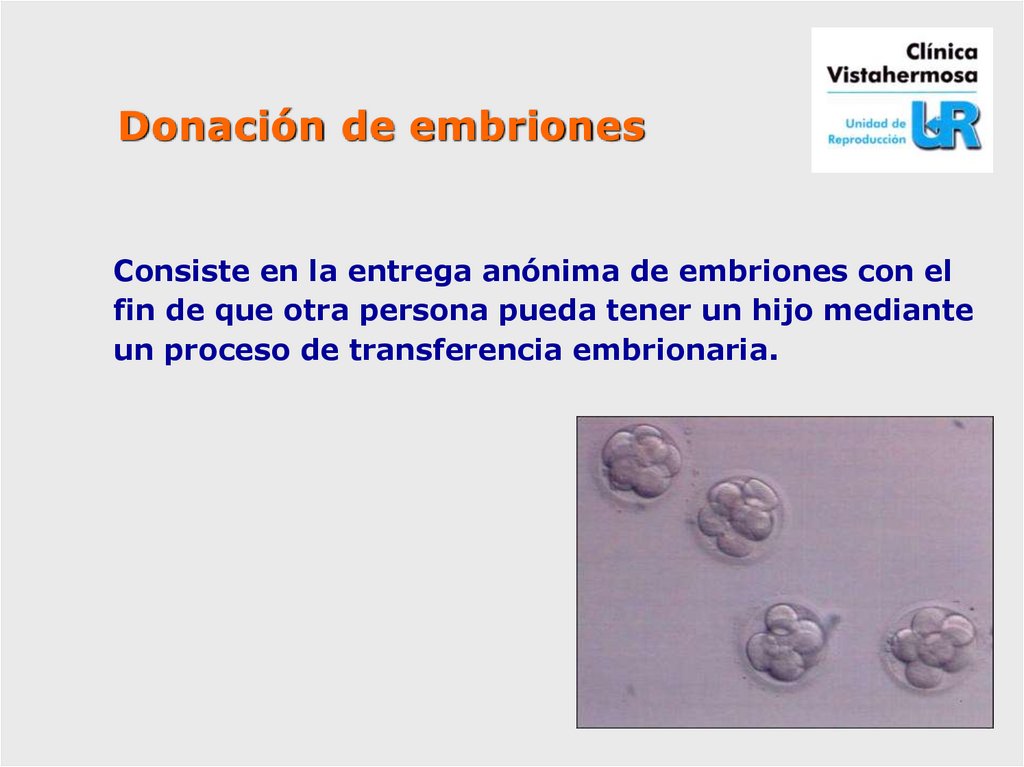 Donación de embrionesConsiste en la entrega anónima de embriones con el