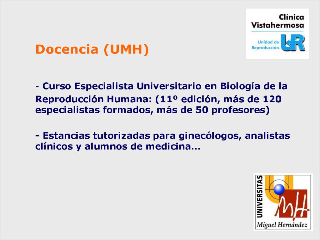 Docencia (UMH)- Curso Especialista Universitario en Biología de la