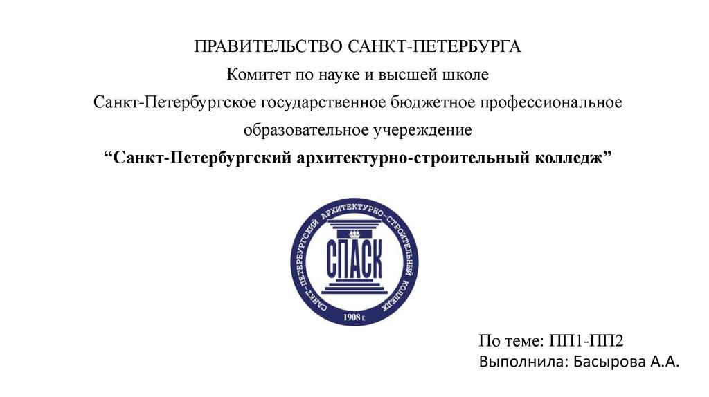 1. ПРАВИТЕЛЬСТВО САНКТ-ПЕТЕРБУРГА Комитет по науке и высшей школе Санкт-Петербургское государственное бюджетное профессиональное