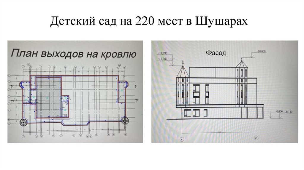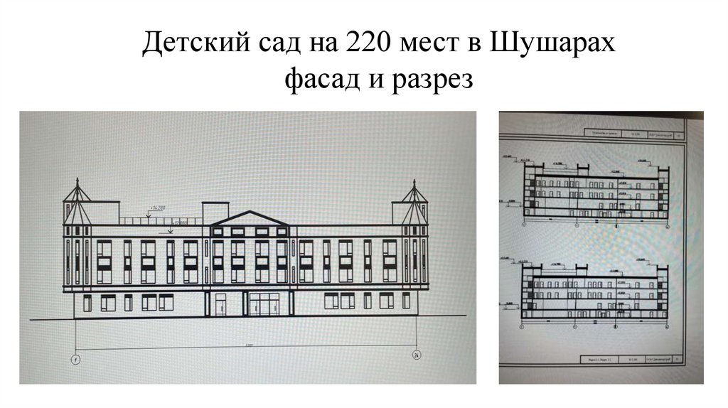 Детский сад на 220 мест в Шушарахфасад и разрез