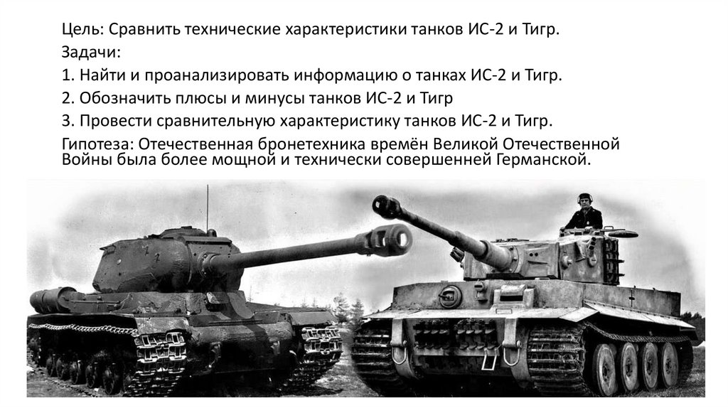 Цель: Сравнить технические характеристики танков ИС-2 и Тигр.Задачи: