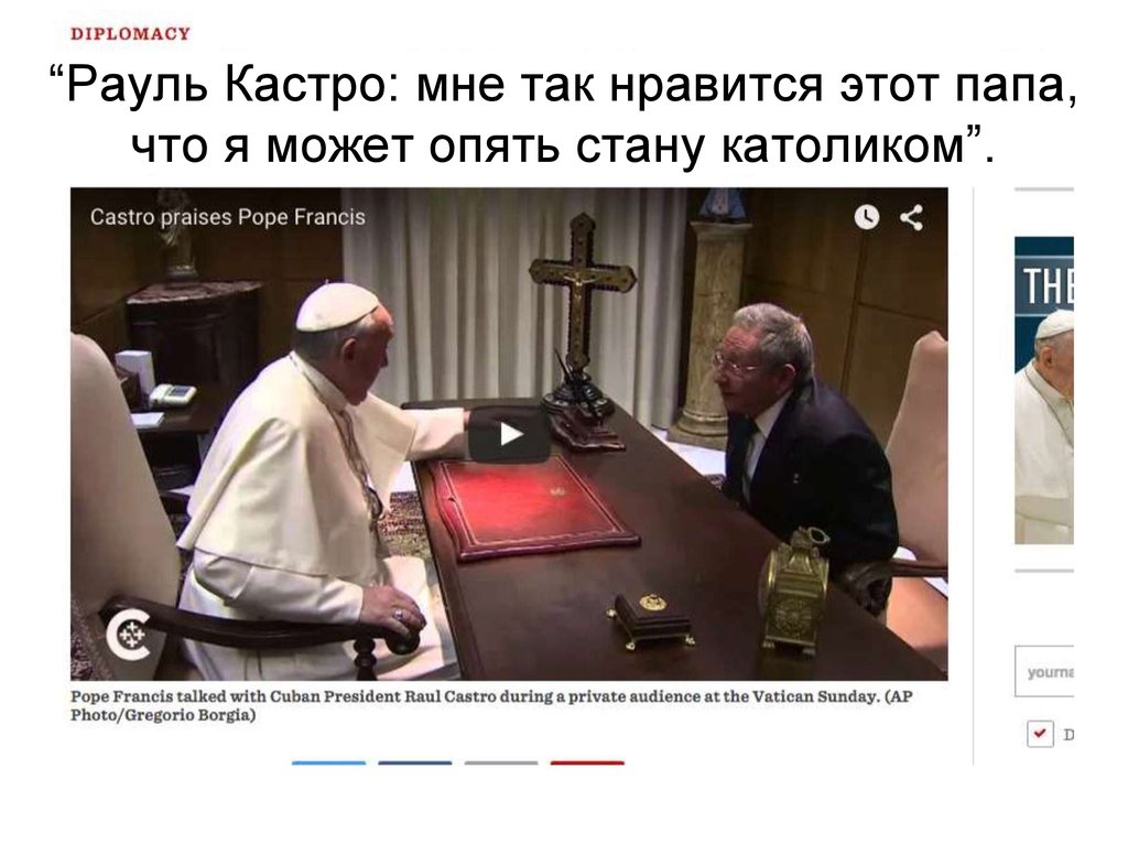 “Рауль Кастро: мне так нравится этот папа,что я может опять стану католиком”.