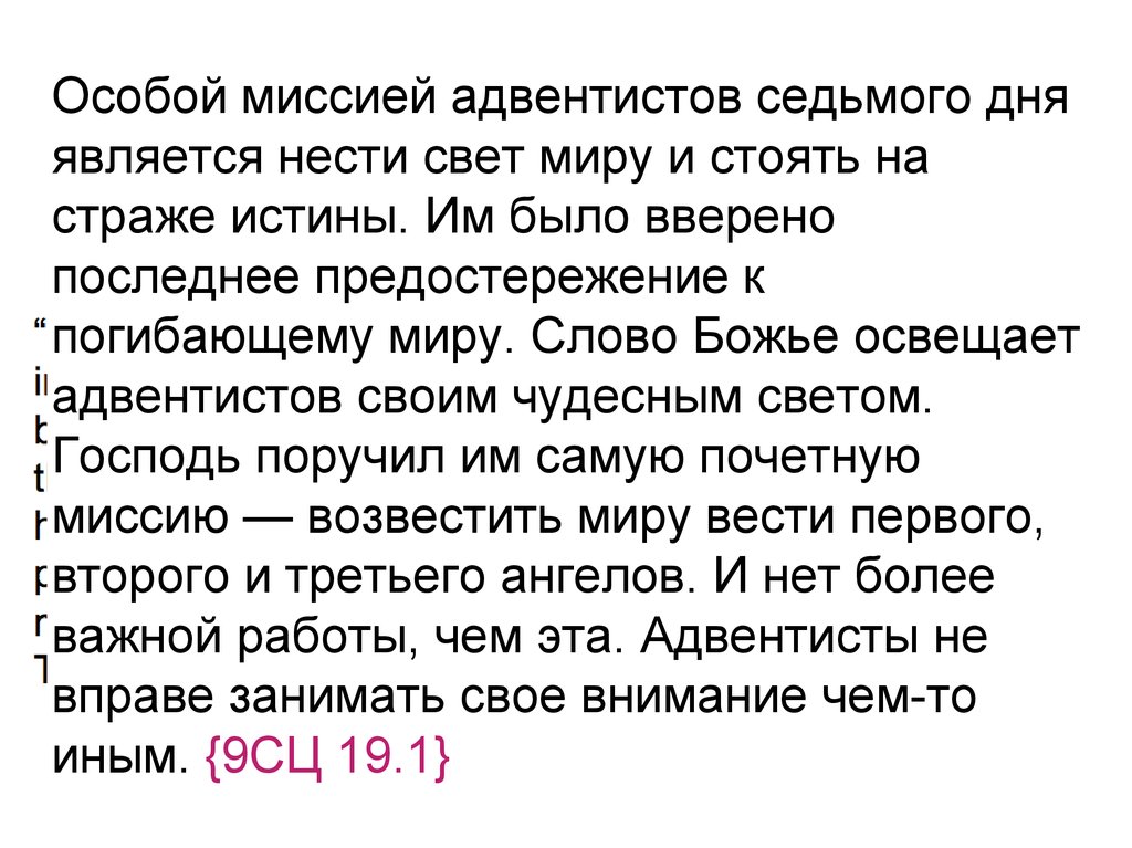 Особой миссией адвентистов седьмого дняявляется нести свет миру и стоять на