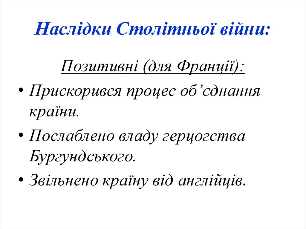 10. Наслідки Столітньої війни: