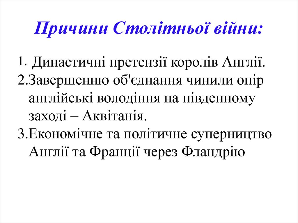 3. Причини Столітньої війни: