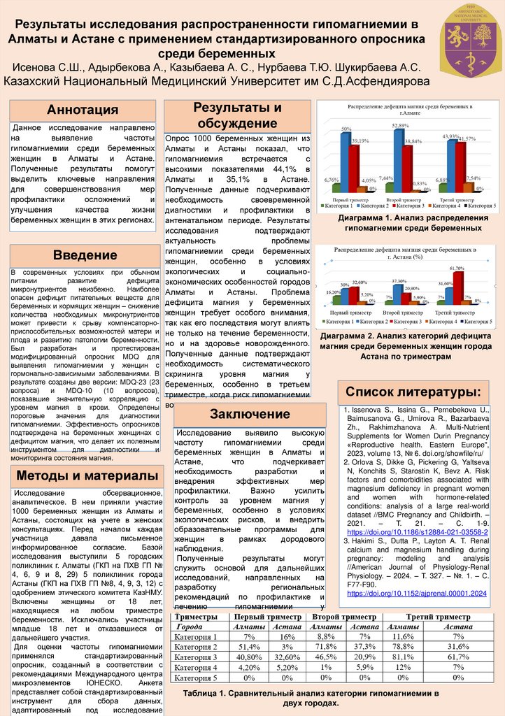 Результаты исследования распространенности гипомагниемии в Алматы и Астане с применением стандартизированного опросника
