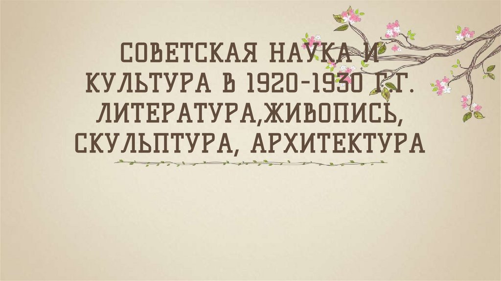 1. Советская наука и культура в 1920-1930 г.г. Литература,живопись, скульптура, архитектура