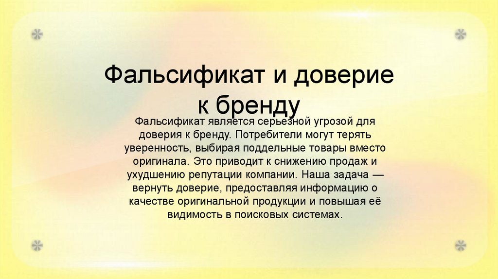 Как защитим брендСистемная работа с фальсификатом и негативом