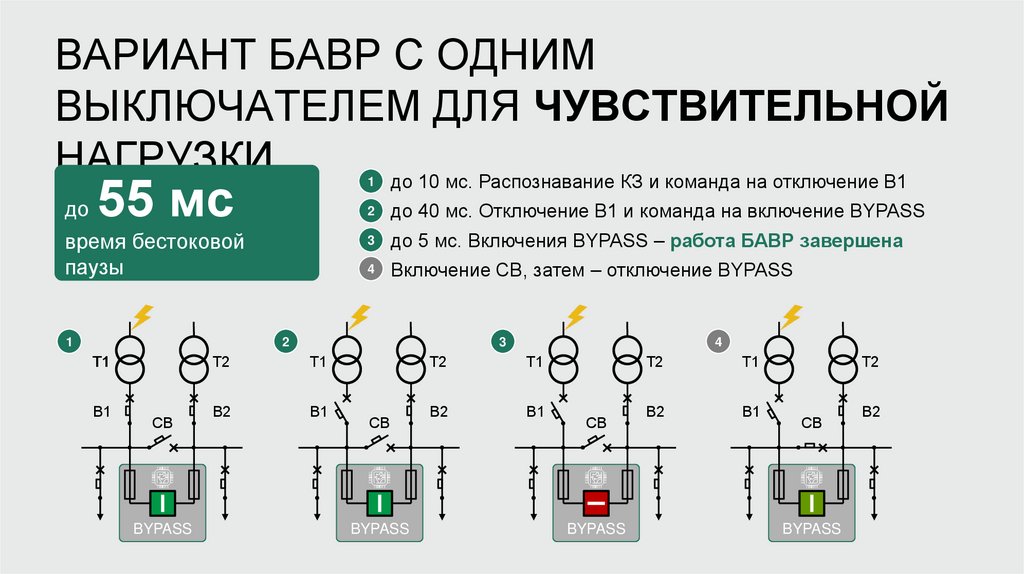 до 40 мс. Отключение В1 и команда на включение BYPASS