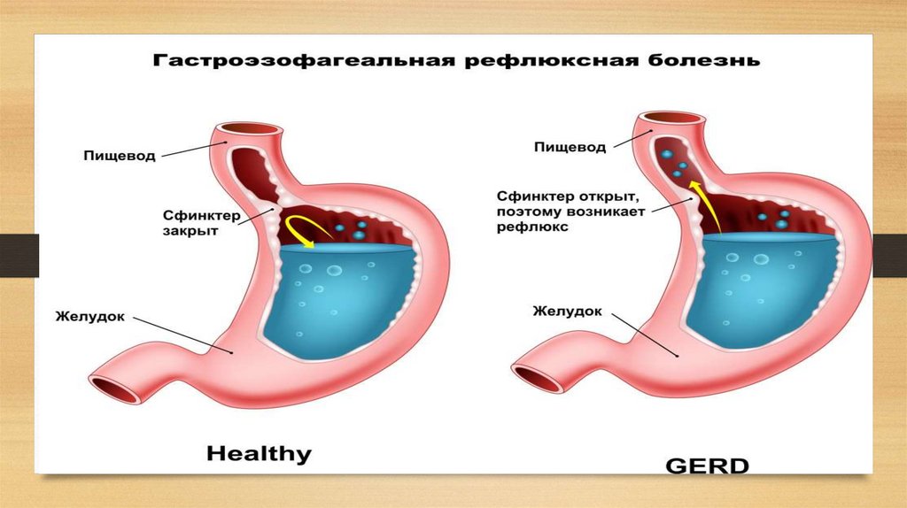 ГЭРБ — это кислотозависимая болезнь. Кислотность (pН) в желудке равна 1–2, а внижней трети пищевода pН составляет 5,5–7,0. Забросы кислоты в пищевод и выше