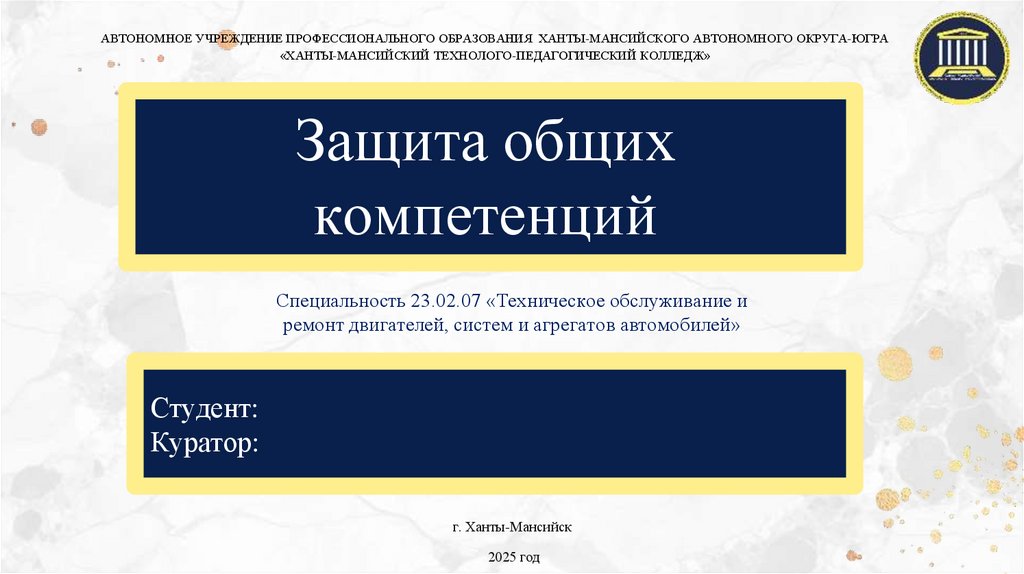 АВТОНОМНОЕ УЧРЕЖДЕНИЕ ПРОФЕССИОНАЛЬНОГО ОБРАЗОВАНИЯ ХАНТЫ-МАНСИЙСКОГО АВТОНОМНОГО ОКРУГА-ЮГРА«ХАНТЫ-МАНСИЙСКИЙ ТЕХНОЛОГО-ПЕДАГОГИЧЕСКИЙ КОЛЛЕДЖ»