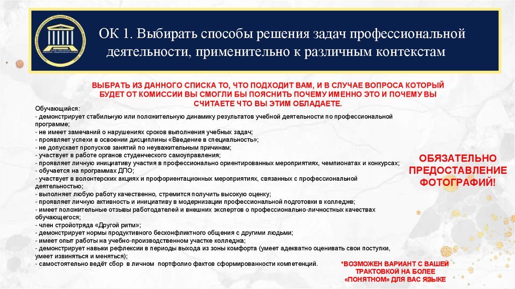 ОК 1. Выбирать способы решения задач профессиональнойдеятельности, применительно к различным контекстам
