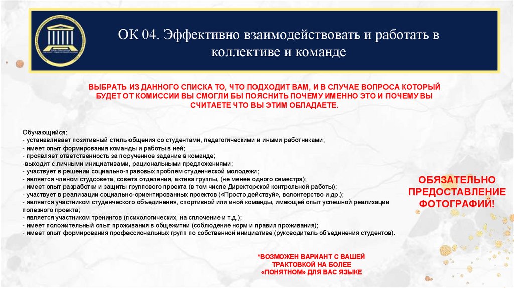ОК 04. Эффективно взаимодействовать и работать вколлективе и команде