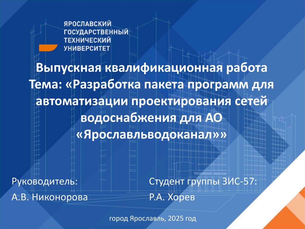 Разработка пакета программ для автоматизации проектирования сетей водоснабжения для АО «Ярославльводоканал»