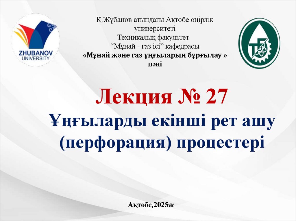 Ұңғыларды екінші рет ашу (перфорация) процестері. Лекция 27