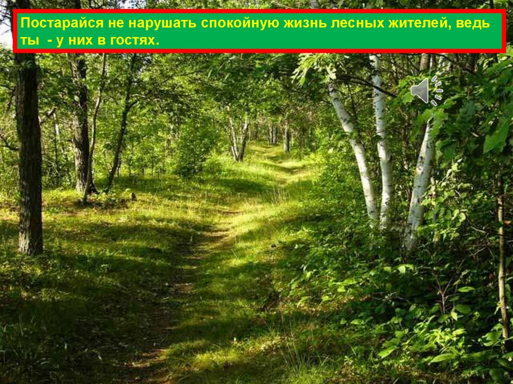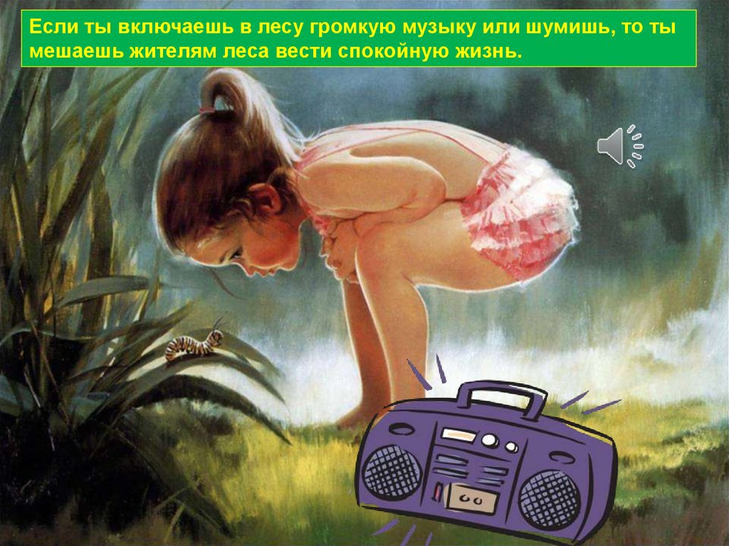 Если ты включаешь в лесу громкую музыку или шумишь, то тымешаешь жителям леса вести спокойную жизнь.
