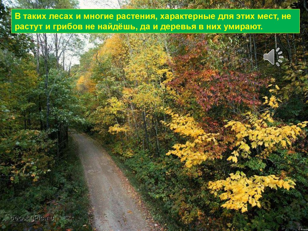 В таких лесах и многие растения, характерные для этих мест, нерастут и грибов не найдёшь, да и деревья в них умирают.