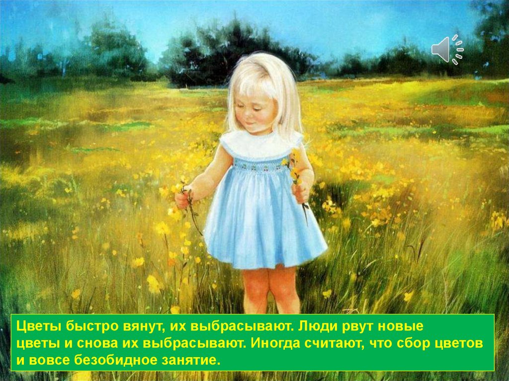 Цветы быстро вянут, их выбрасывают. Люди рвут новыецветы и снова их выбрасывают. Иногда считают, что сбор цветов