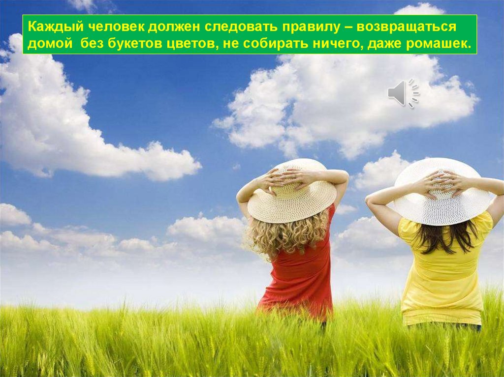 Каждый человек должен следовать правилу – возвращатьсядомой без букетов цветов, не собирать ничего, даже ромашек.
