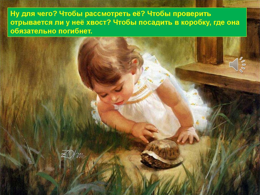 Ну для чего? Чтобы рассмотреть её? Чтобы проверитьотрывается ли у неё хвост? Чтобы посадить в коробку, где она
