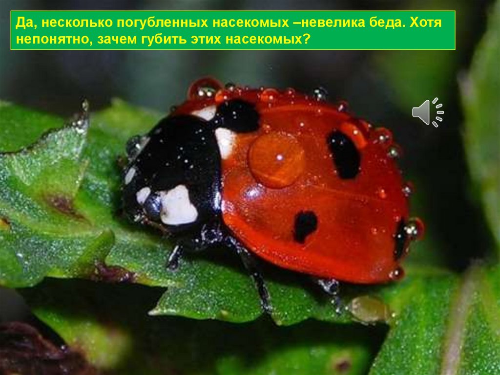 Да, несколько погубленных насекомых –невелика беда. Хотянепонятно, зачем губить этих насекомых?