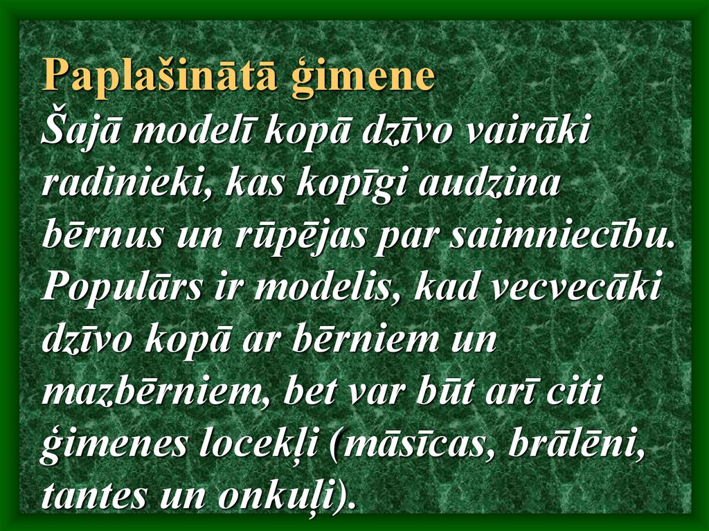 Paplašinātā ģimeneŠajā modelī kopā dzīvo vairāki
