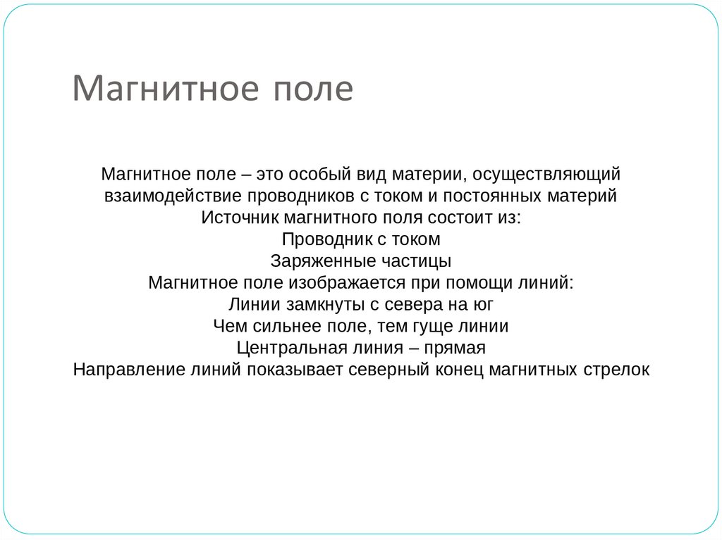 Магнитное полеМагнитное поле – это особый вид материи, осуществляющий