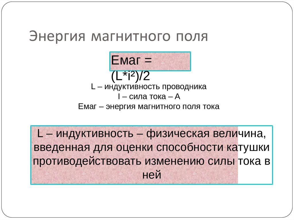 Eмаг – энергия магнитного поля тока