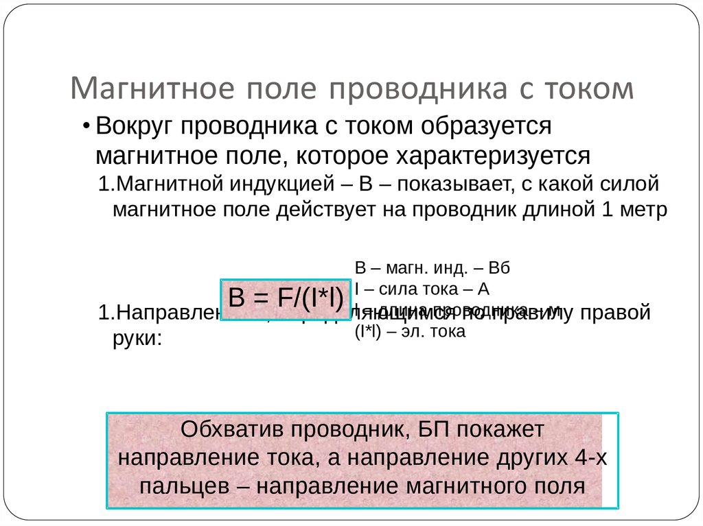 пальцев – направление магнитного поля